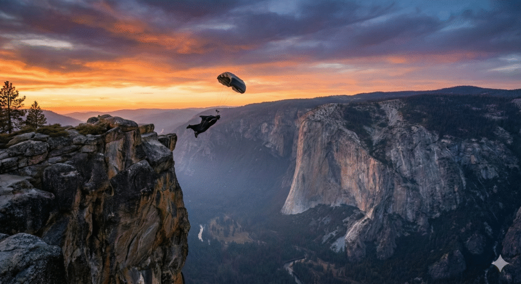 Base jumping combină curajul, precizia și viteza reacțiilor la cel mai înalt nivel. Chiar și parașutiști experimentați trebuie să fie extrem de atenți la condițiile meteo, poziția corpului și deschiderea corectă a parasutei. Este sportul care oferă adrenalina pură dar și un risc constant de accidentare gravă sau fatală.